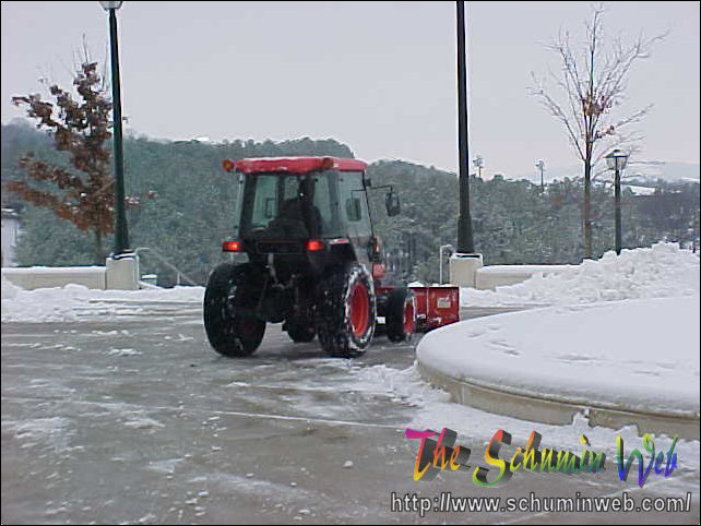 Getting there, I went through the building (hey, it’s warmer), and encountered the snow-plow, clearing the snow.