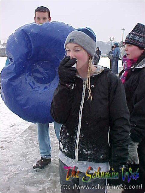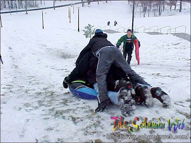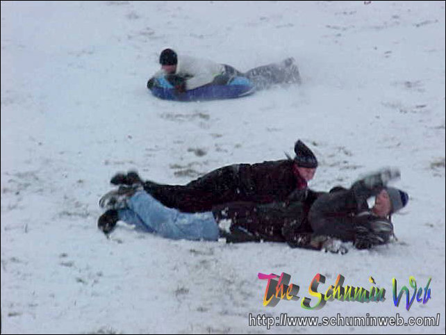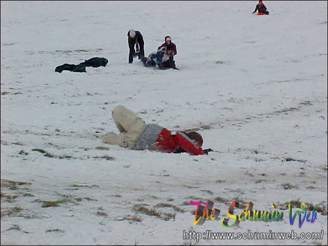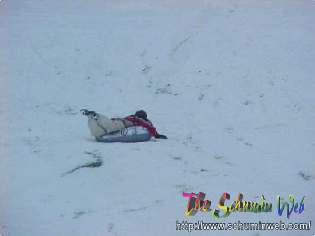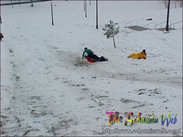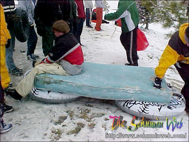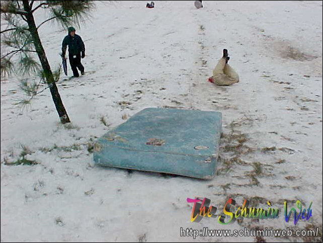 Meanwhile, other people tried to take a large blue mattress and use it for sledding. The raw mattress, unfortunately, did not work. It stopped, and sent its occupant on ahead.