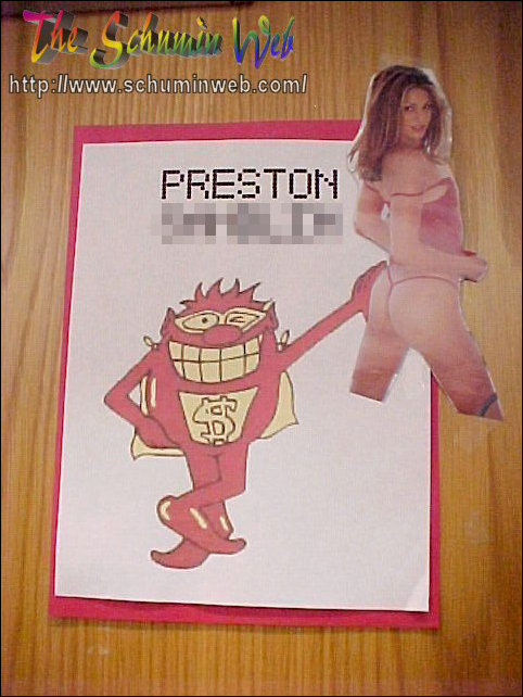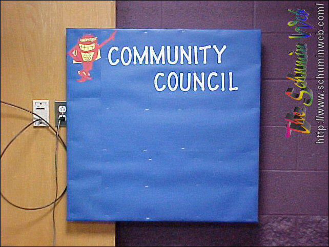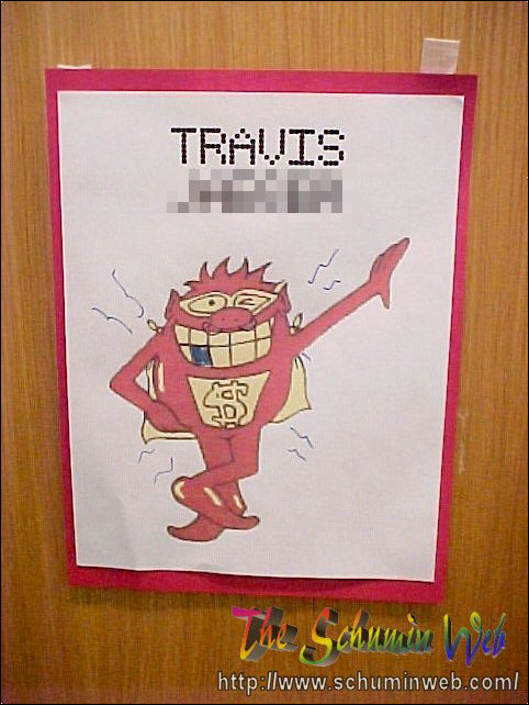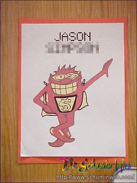WhammyNothing brings a residence hall together sometimes like a good theme. Everyone had a theme in Potomac, but there was no coordination between them. As a result, as a staff, we had a “Mission Impossible” theme, the fifth floor on the upperclass side had their “I’ve got five on it”, the third floor on upperclass had “Third floor’s the charm”. Down on two, where I determined the theme, the Whammy got its day in the sun. Yes, the Whammy, from the classic 1980s game show Press Your Luck. I used egg-crate fonts on the door signs, did my two “rotating” bulletin boards up like a game board, and put a Whammy on my other bulletin boards as well.