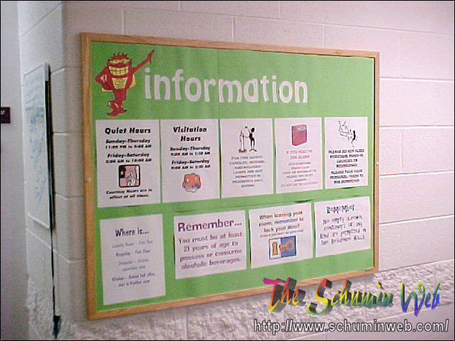 Following the opening of Potomac Hall, some of the residents took down their Whammies and put up their own theme. Others, however, decorated their Whammies! One question the Whammy used to ask after someone landed on him was, “Who would ever hurt a Whammy?” before getting nailed over the head with a hammer. Seems that the residents would never hurt a Whammy, but they were willing to embellish… So let’s take a look at this Whammy-themed floor…
